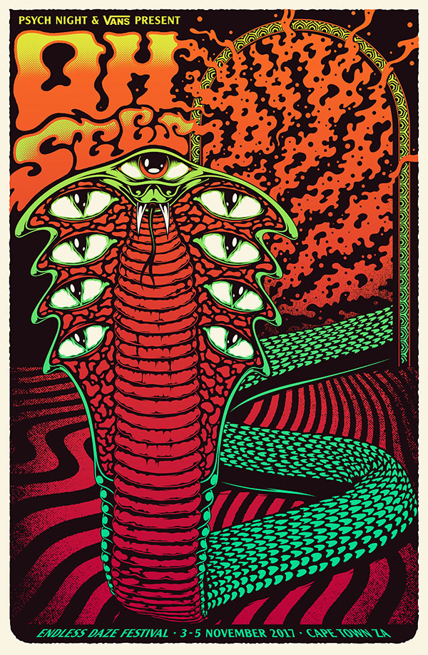 screen printed posters for the festival and headliners Moon Duo and Oh sees.